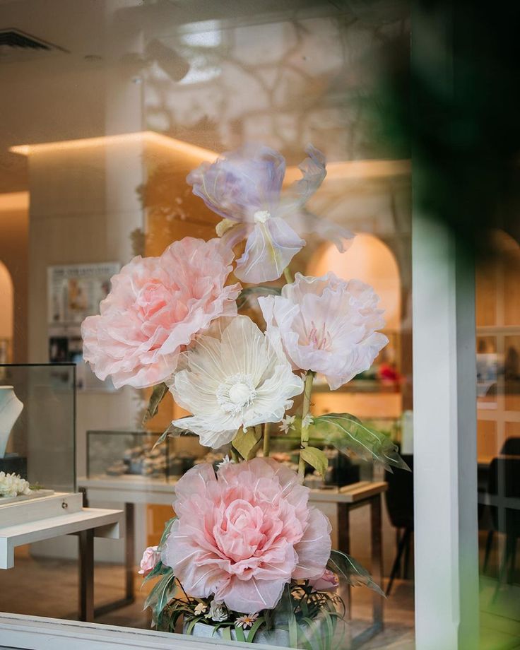 Nos fleurs géantes peuvent être en soie ou papier selon la taille demandé, le modèle et sa position finale.